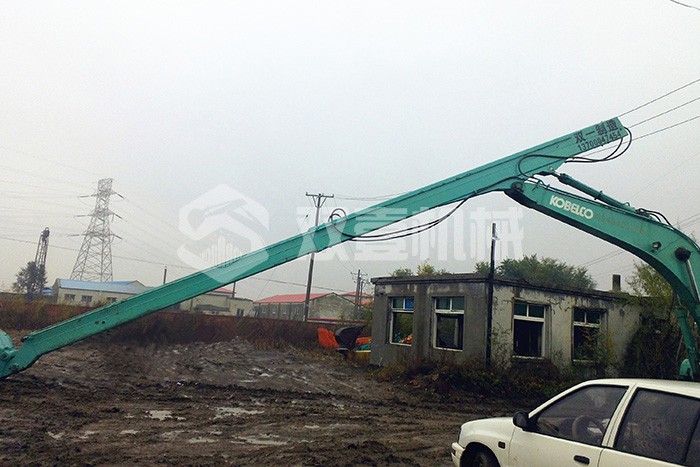 兩節伸縮臂是雙壹機械2005年自主研發的突破性產品,被多家同行模仿制造,從未被超越;臂長度19米,采用高噸位的三機聯動折彎設備折成U型,雙U型對接的焊接方式。
