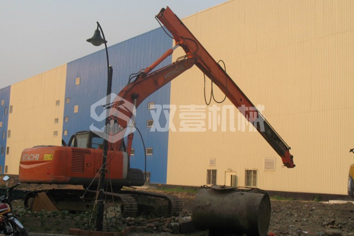 兩節(jié)伸縮臂是雙壹機(jī)械2005年自主研發(fā)的突破性產(chǎn)品,被多家同行模仿制造,從未被超越;臂長度19米,采用高噸位的三機(jī)聯(lián)動(dòng)折彎設(shè)備折成U型,雙U型對接的焊接方式。